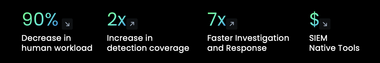 Example: A global bank using a legacy SIEM solution found that 80% of their daily security alerts were false positives.These were primarily triggered by dynamic cloud workloads spinning up and down, which the static detection rules couldn't accommodate. Analysts wasted hours each day chasing down these dead ends, while genuine threats were buried in the noise.